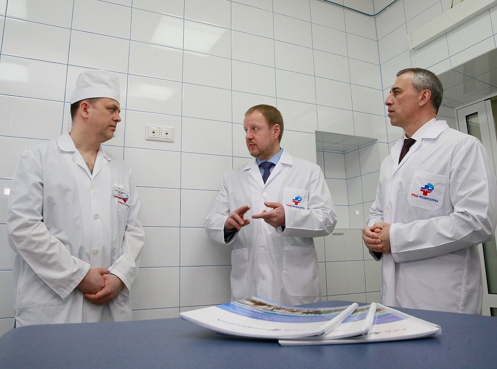 Губернатор Алтайского края Виктор Томенко провел рабочую встречу с начальником Западно-Сибирской железной дороги – филиала ОАО «РЖД» Александром Грицаем в ЧУЗ «Клиническая больница «РЖД-Медицина»