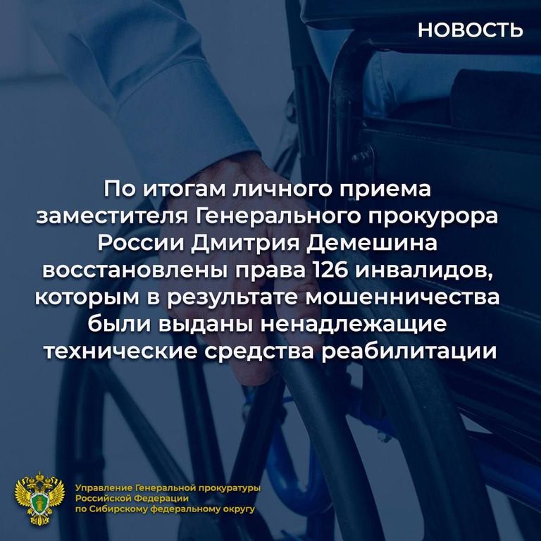 По итогам личного приема заместителя Генерального прокурора России Дмитрия Демешина восстановлены права 126 инвалидов, которым в результате мошенничества были выданы ненадлежащие технические средства реабилитации