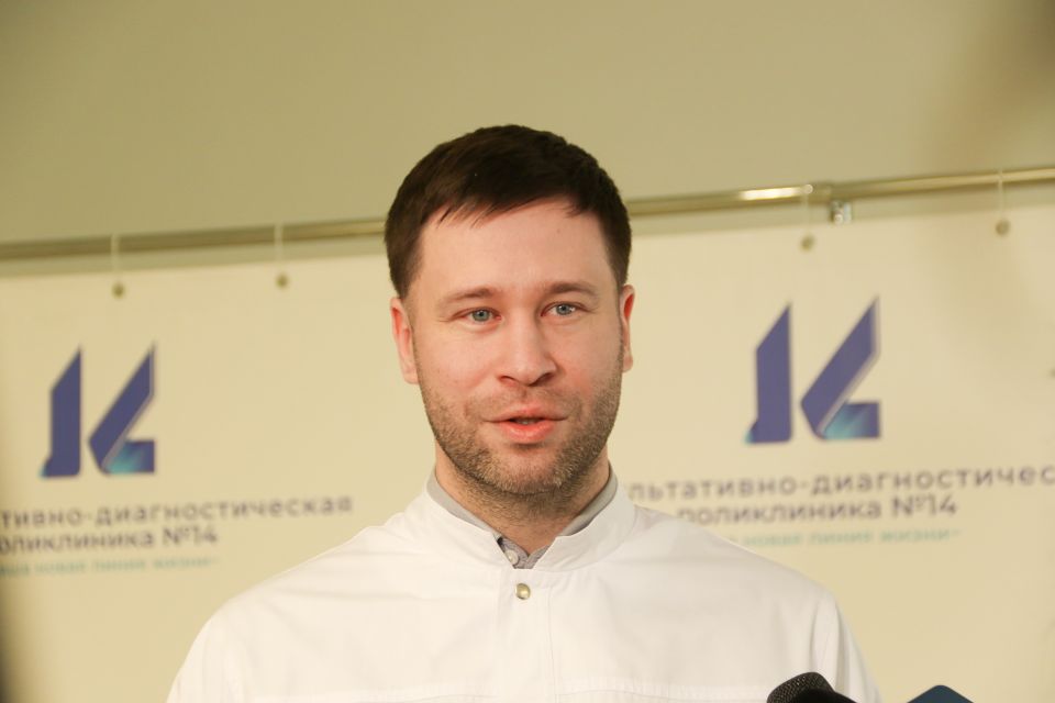 Главный врач барнаульской поликлиники №14 Дмитрий Денисов Фото: Виталий БарабашДля примера Денисов озвучил, что по старым адресам работали четыре врача ультразвуковой диагностики, на новом месте их будет 10. Также медучреждение вдвое увеличит количество кабинетов забора крови.