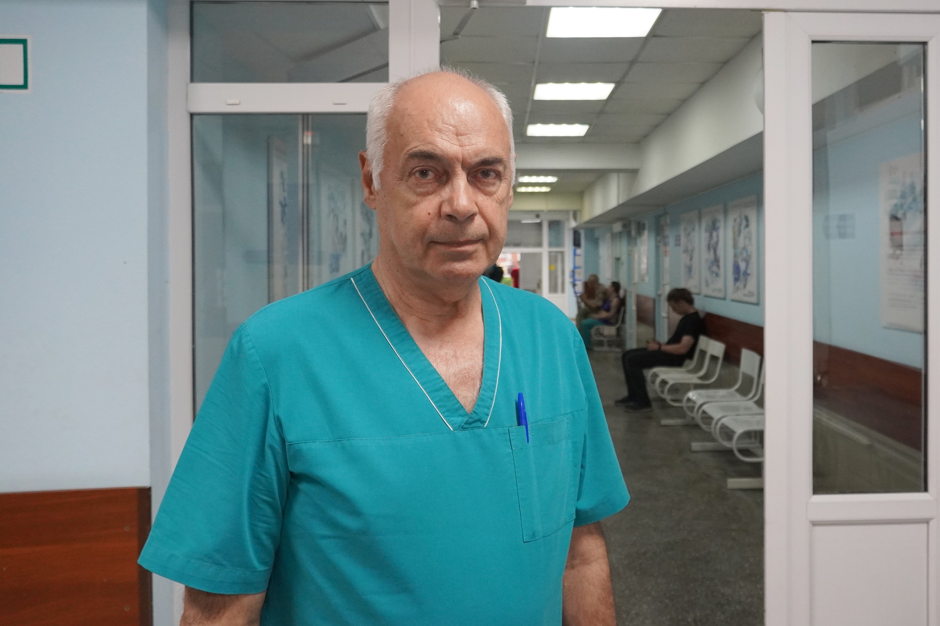 Приемный покой Краевой клинической больницы скорой медицинской помощи — самое беспокойное место в медучреждении. Отсюда начинается госпитализация больных. Высокий, худощавый, в бирюзовом медицинском костюме и белом колпаке Николай Войтенко один из первых встречает приехавших в стационар экстренных пациентов.